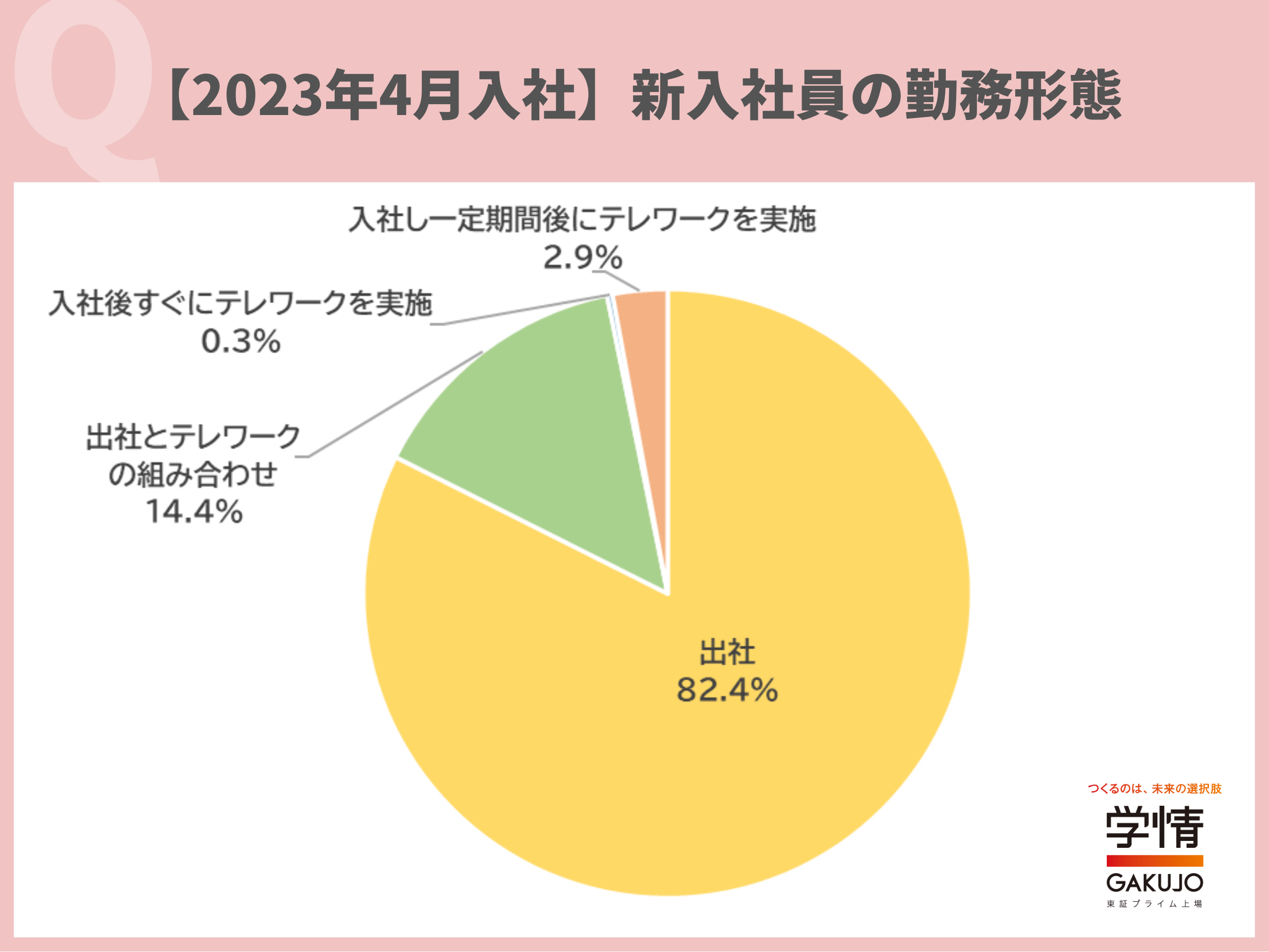 (2)新入社員の勤務形態は「出社」が82.4%で最多。次いで「出社とテレワークの組み合わせ」14.4%