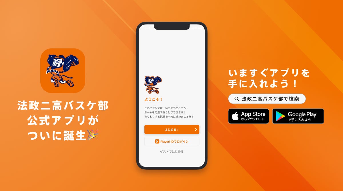 AppStoreもしくはGooglePlayで「法政二高男子バスケットボール部」と検索!