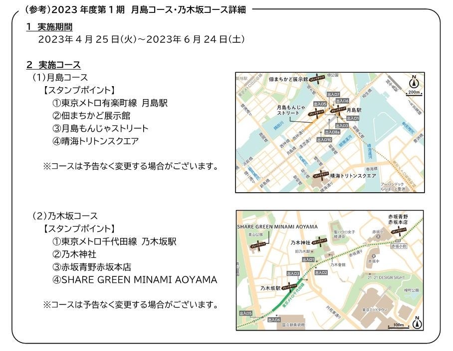 東京地下鉄株式会社(本社:東京都台東区、代表取締役社長:山村 明義、以下「東京メトロ」は、当社線をご利用いただきながら東京の様々な魅力ある街を訪れていただく「メトロ街めぐりスタンプラリー」(2022年度より3年間実施)において、今年度も新たに12コースを設定いたします。