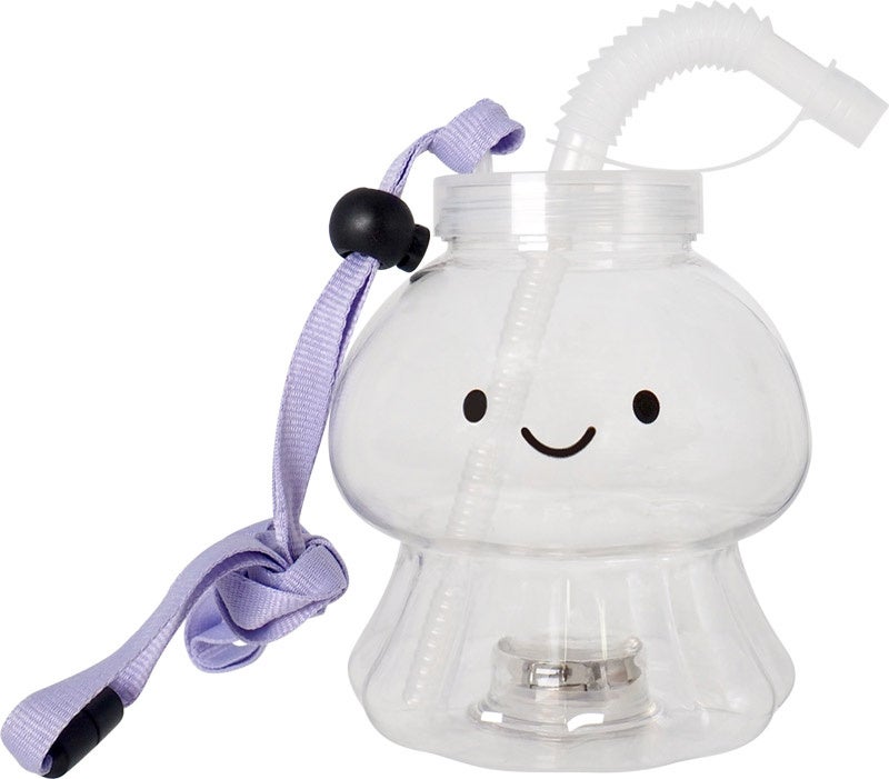 クラゲ、メンダコの形をしたドリンクボトルです。底のスイッチを押すとピカピカ光ります!お好みの飲み物を入れてお楽しみください!(ストロー・ストラップ付)
