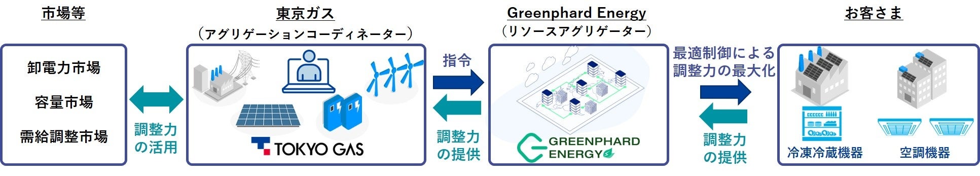 再生可能エネルギーの普及拡大が進む中、電力の安定供給に向けてはDRの一層の推進が重要です。そこで課題となるのが、現状では活用しきれていないDERを用いた更なる調整力の創出です。本連携では、Greenphard社の最先端のAIを駆使したインテリジェントIoT技術[*3]と、東京ガスの調整力取引[*4]におけるノウハウを組み合わせることで、お客さまの設備を電力需給に応じて最適に制御し、DRにおけるDER活用の最大化を目指します。