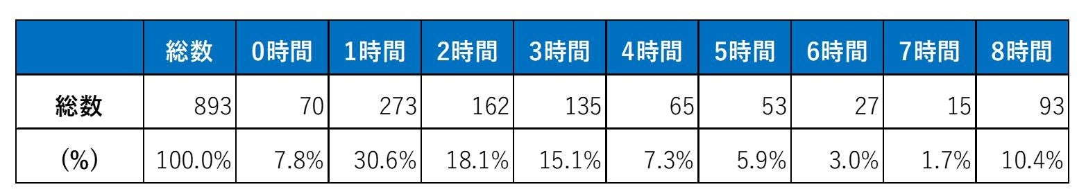【図2】花粉症の影響による、仕事のパフォーマンス低下を感じる時間について(N=893)※有効回答を元に算出し、1分以上1時間未満の回答は1時間、法定労働時間を超える8時間以上の回答は8時間として算出。