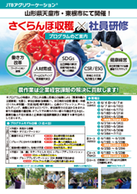 主に首都圏内企業を対象に「さくらんぼ収穫×社員研修プログラム」への参加を促し、農業を通じた社員研修(人材育成)を通じ山形県との交流を行います。