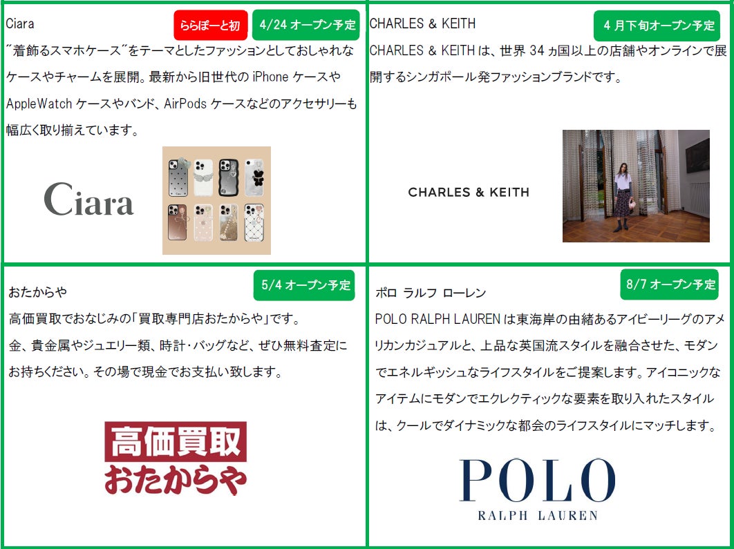 計26店舗のテナントが新規オープン・移転・スケールアップ |