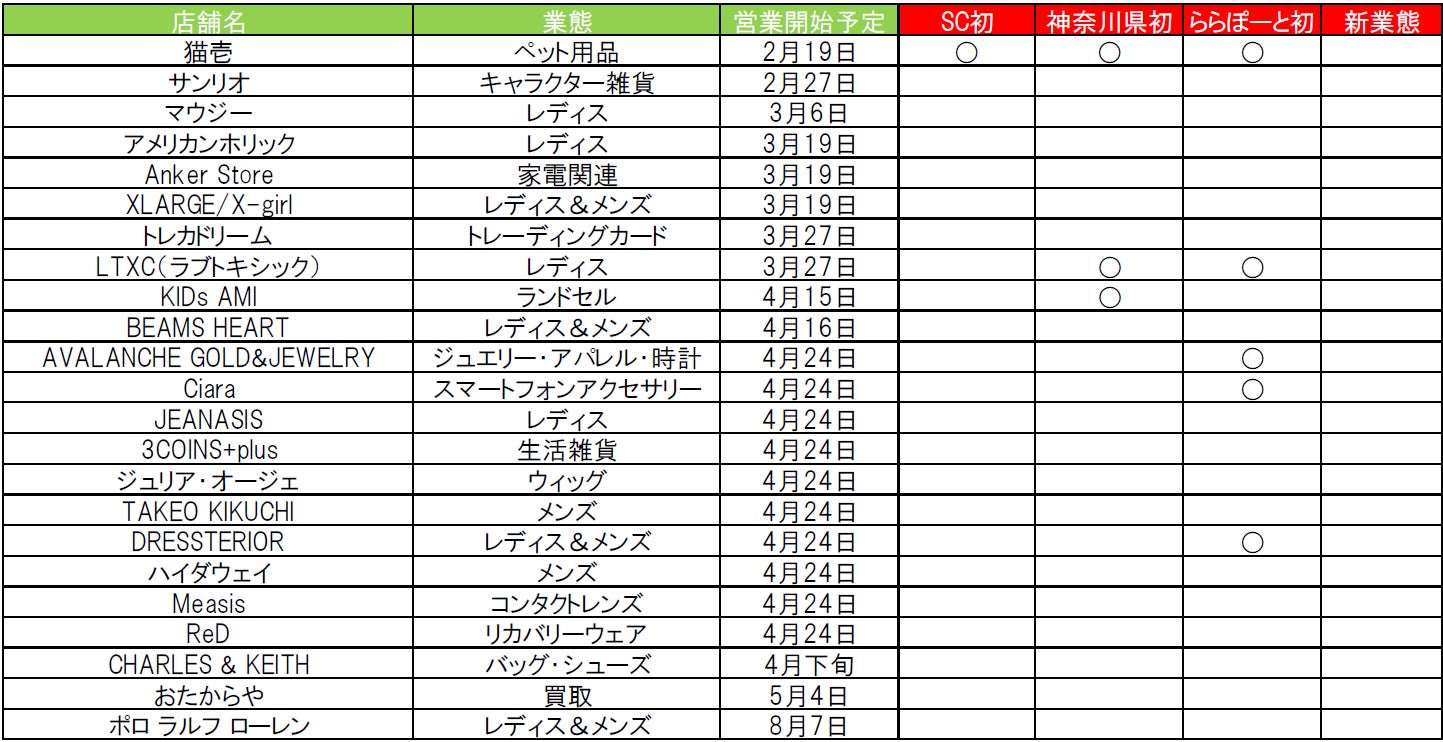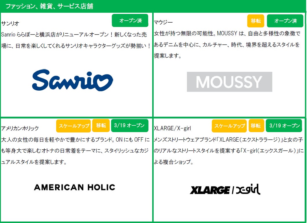 「三井ショッピングパーク ららぽーと横浜」 出店店舗一覧