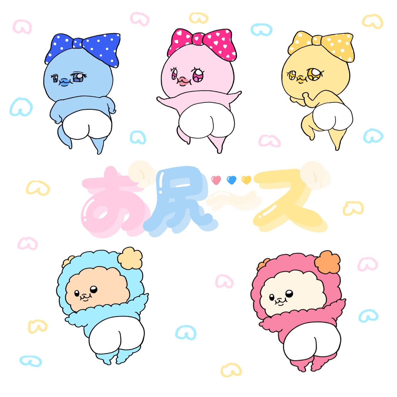 「お・尻〜ズ」は自分たちのお尻が世界一プリティだと思っているおしりの妖精。おぷり、こぷりはお尻が汚れたらきれいにする魔法をかけてくれるお・尻〜ズのペット