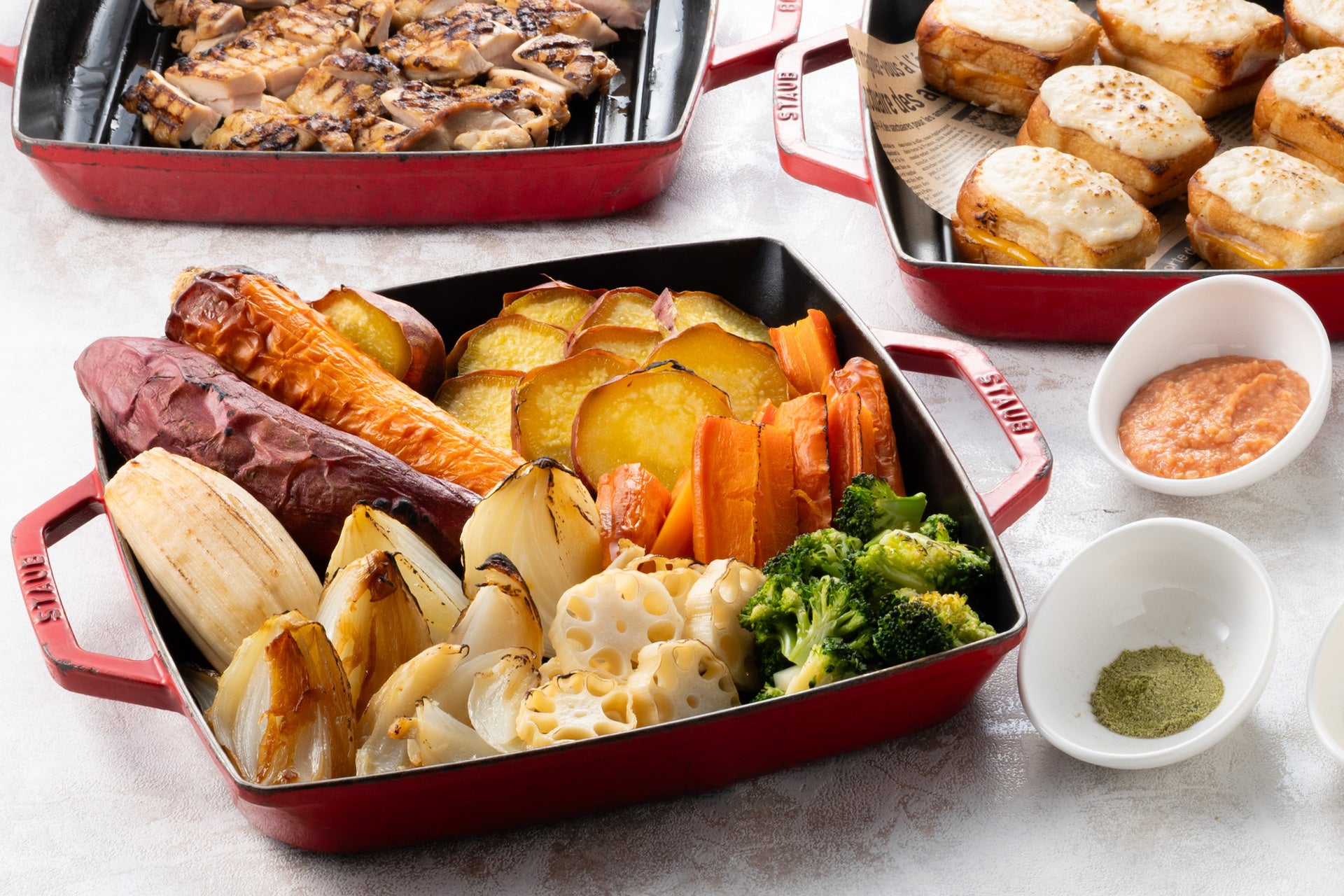 大阪産のさつまいも「夢シルク」を使用した窯焼き野菜や、「夢シルク」を使用した窯焼き野菜、