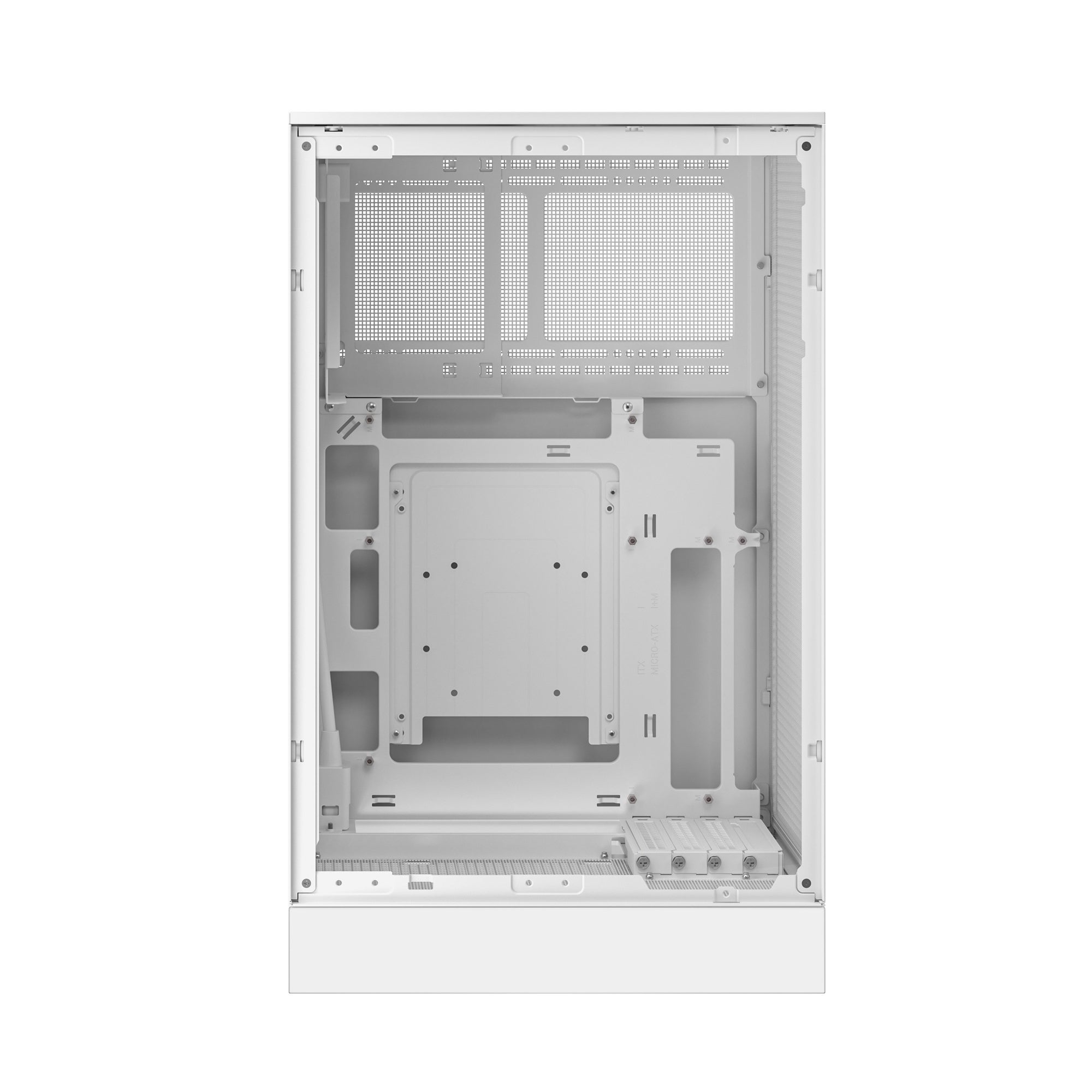 マザーボードを90度回転させる倒立デザインを採用し、小さい接地面積を実現。コンパクトなデザインながら最大413mmのグラフィックボードと全高174mmのCPUクーラーが搭載可能です。マザーボード裏のスペースは幅が29.6mmあり、余裕をもってケーブルを収納できます。