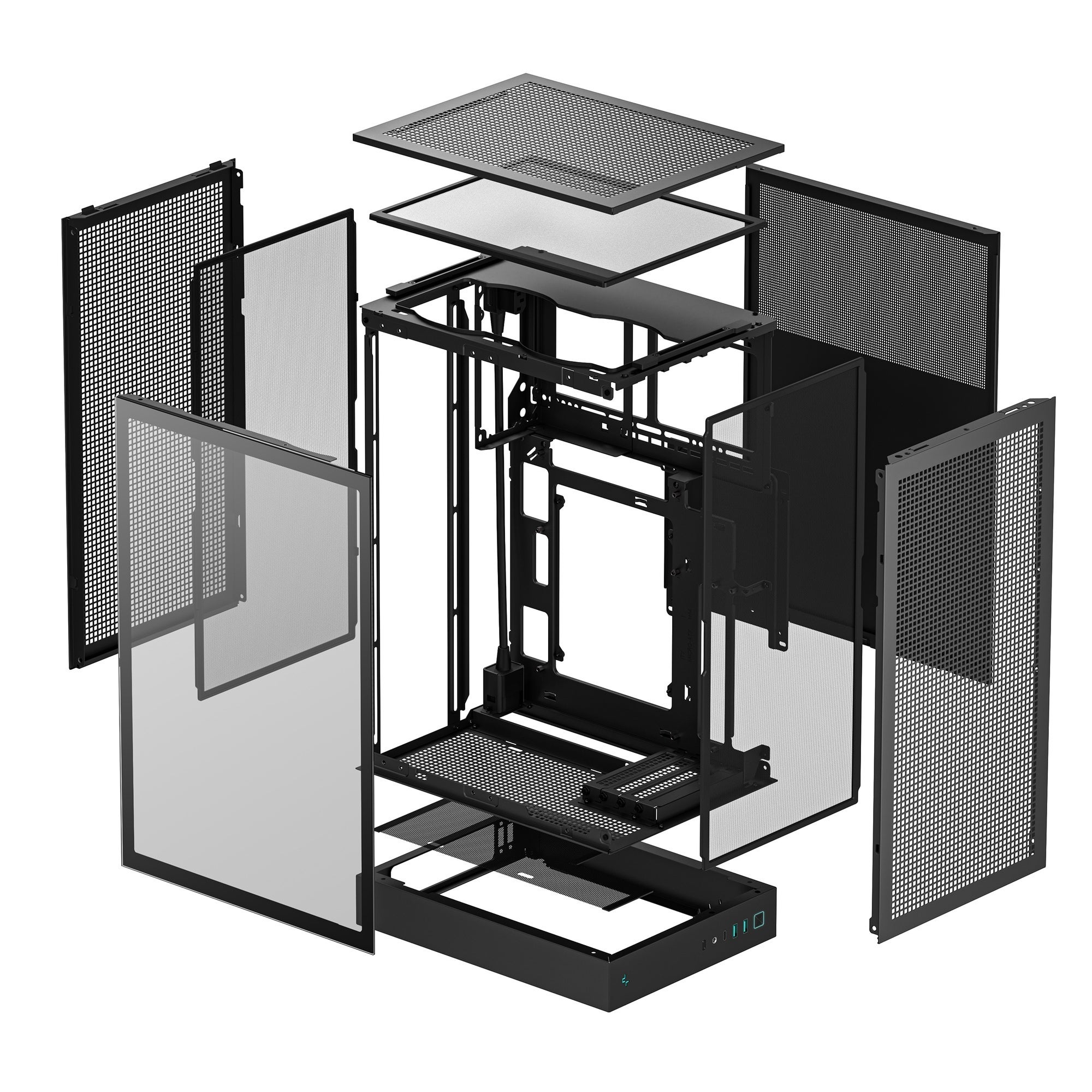 組み立て作業がしやすいよう、サイド4面とトップのパネルが着脱可能になっています。電源ユニット用ブラケットも着脱可能。4枚のダストフィルターも取り外してお手入れができます。
