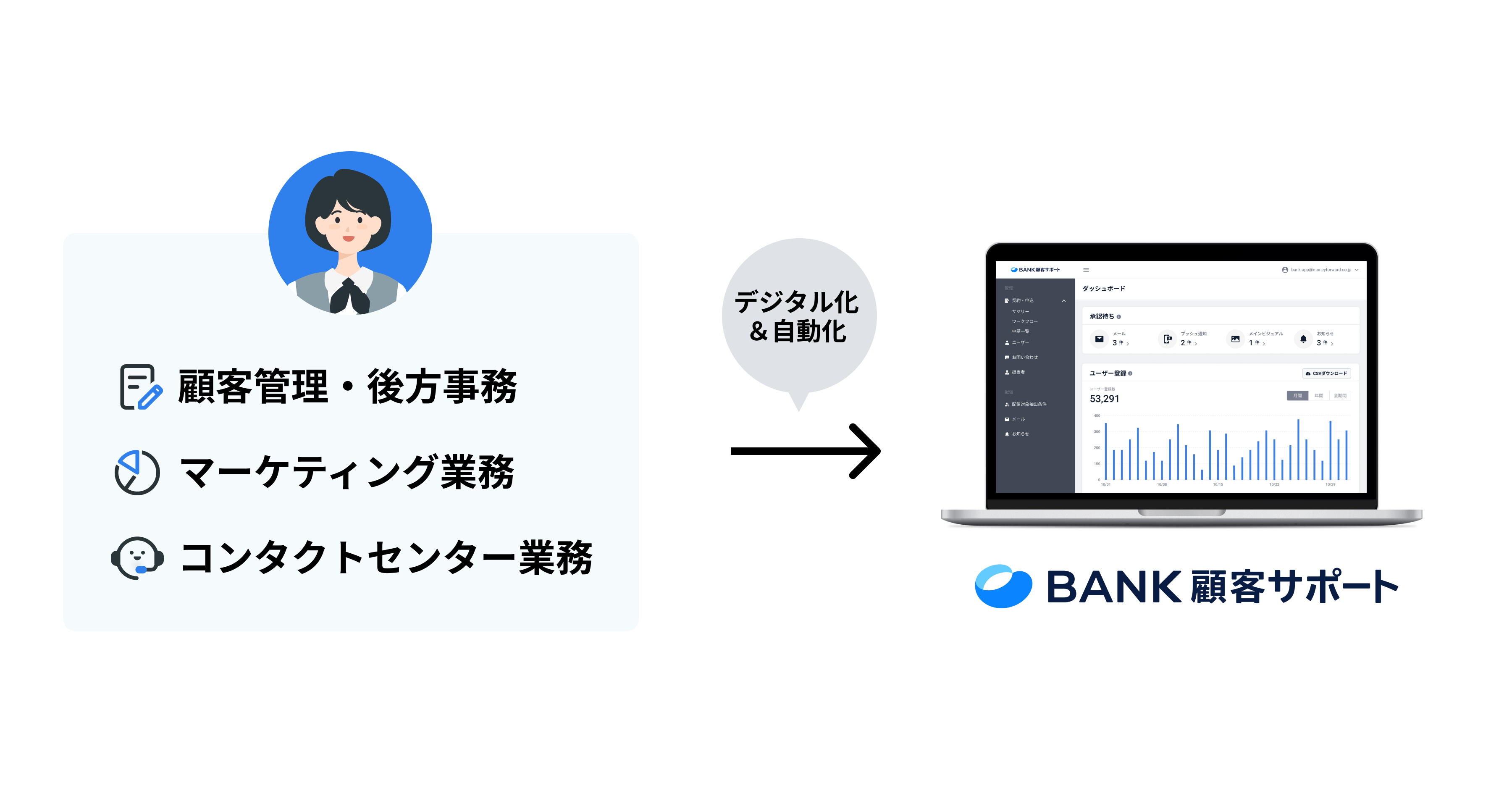 当社は、さまざまな金融サービスをいつでもどこでもかんたんに利用できる、地域金融機関のお客さま向けのモバイルアプリ『BANK APP』と、後方事務やマーケティング業務、コンタクトセンターのデジタル化と自動化を支援する地域金融機関向けのクラウドサービス『BANK 顧客サポート』の提供を通して、地域全体の金融体験の向上に貢献してまいります。