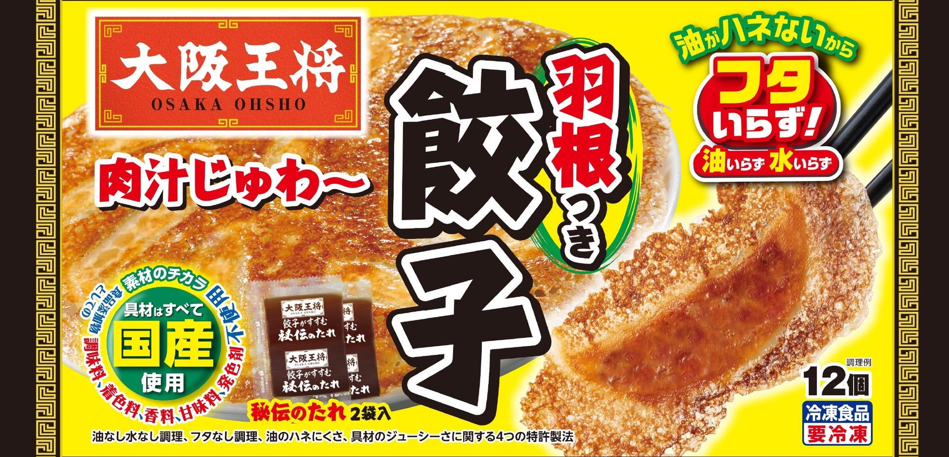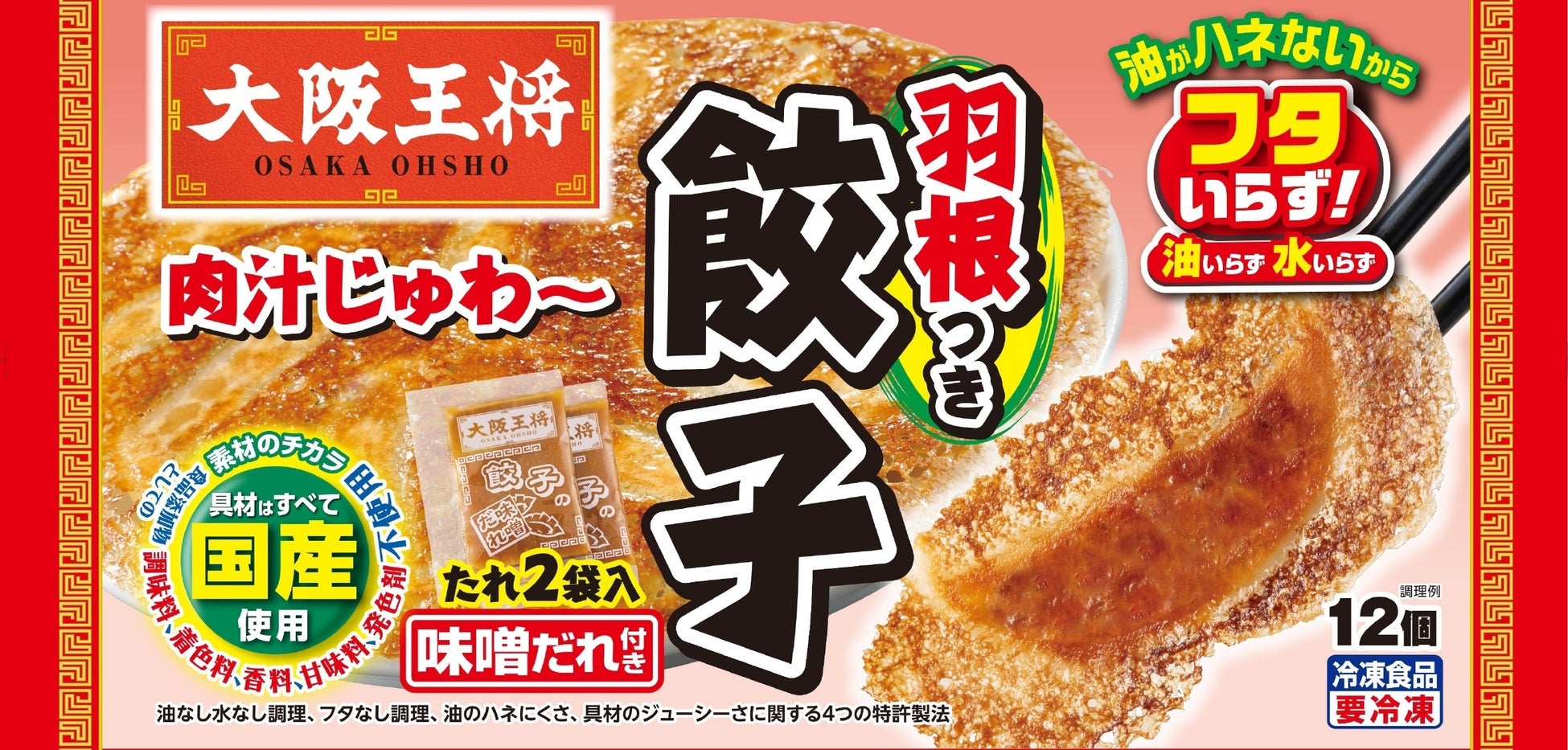 水・油いらず、そしてフタいらず(特許取得)、フレーバーのバリエーションを拡大して様々なお客様向けに提案をしてきました。大阪王将の冷凍餃子が登場して30年以上、今期の羽根つき餃子シリーズの売上高予測は約197億円に。(※)