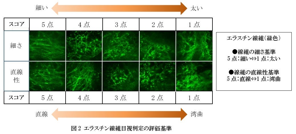 【年代とエラスチン線維の構造変化を数値評価方法で確認】
