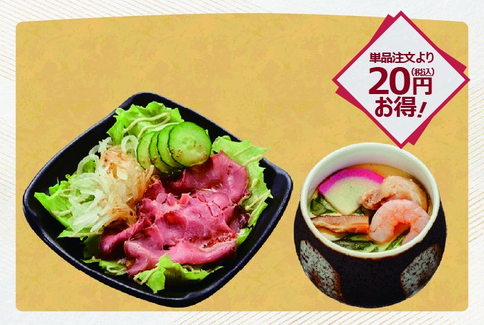 好評のサイドメニューからは、「ローストビーフのサラダ~醤油ドレッシング~」と「茶碗蒸し」をセットにした『サラダ&茶碗蒸しセット』もお得にお召し上がりいただけます。