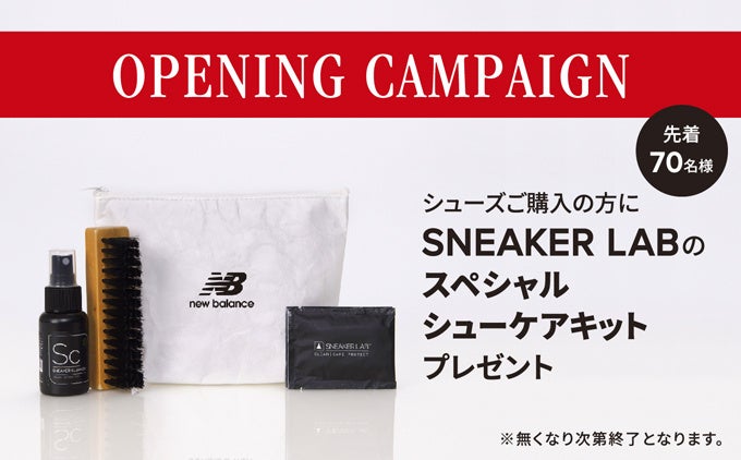 リニューアルオープンを記念し、シューズご購入の先着70名様に100%天然由来成分のシューケア製品ブランド【SNEAKER LAB(スニーカーラボ)】のスペシャルシューケアキットをプレゼントいたします。