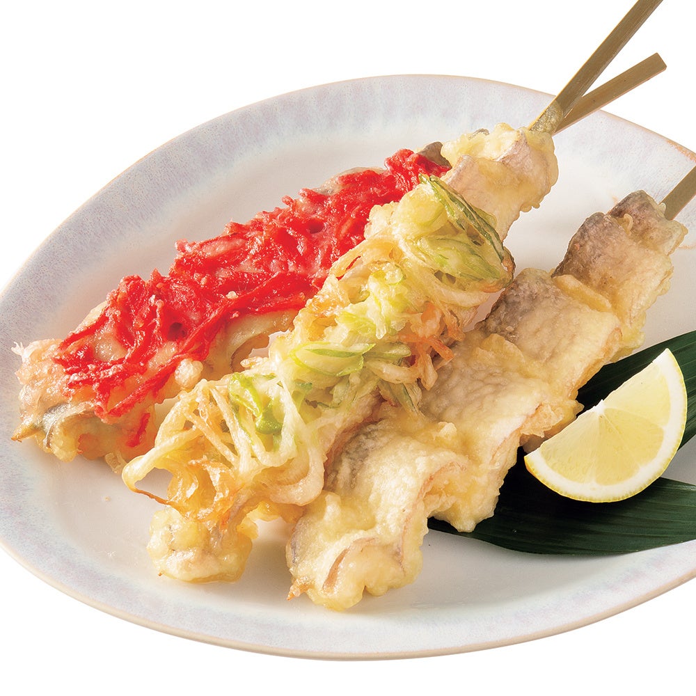波打つように串を打った骨のない太刀魚の天ぷらは、ふわふわ食感が魅力です。