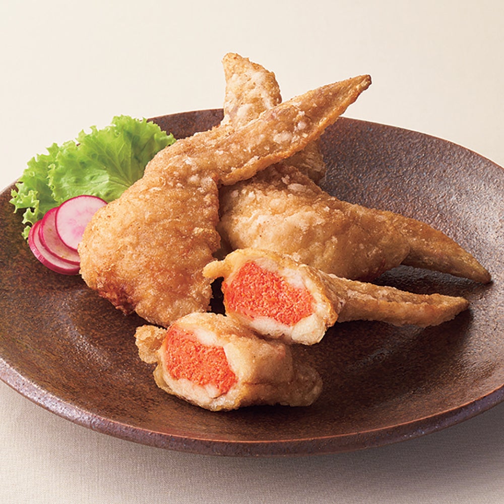 たっぷり明太子を詰めた手羽先をからっと揚げました