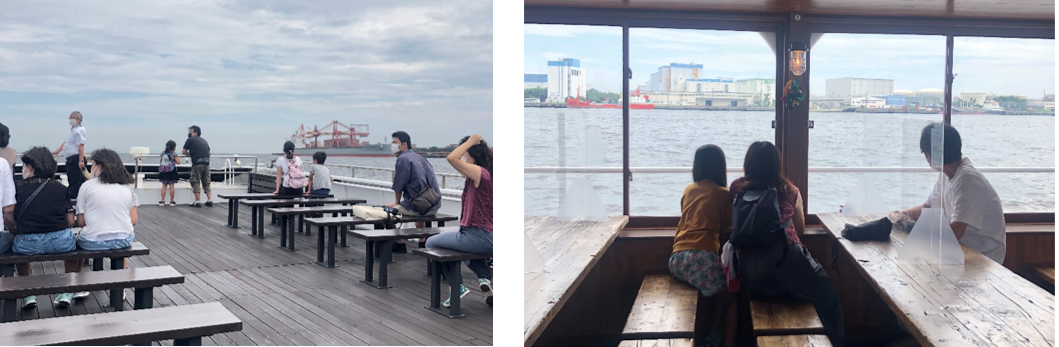 屋上に上がると海風が気持ちよく、ゆったりとした時間を満喫することができました。船内では地形や工場のガイドを行い、世界とつながる川崎港のお話を学ぶ時間となりました。