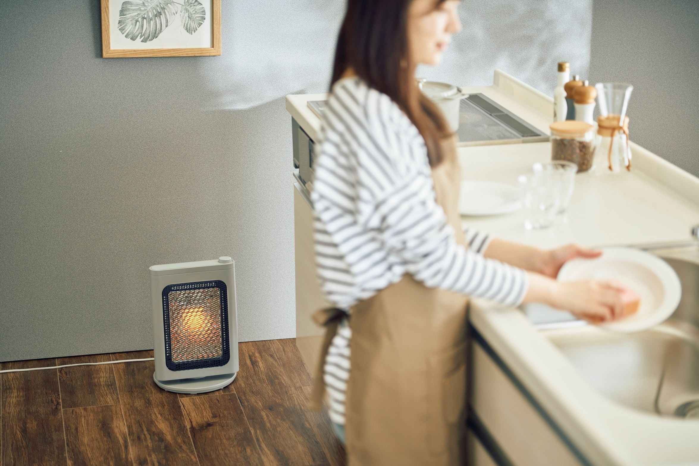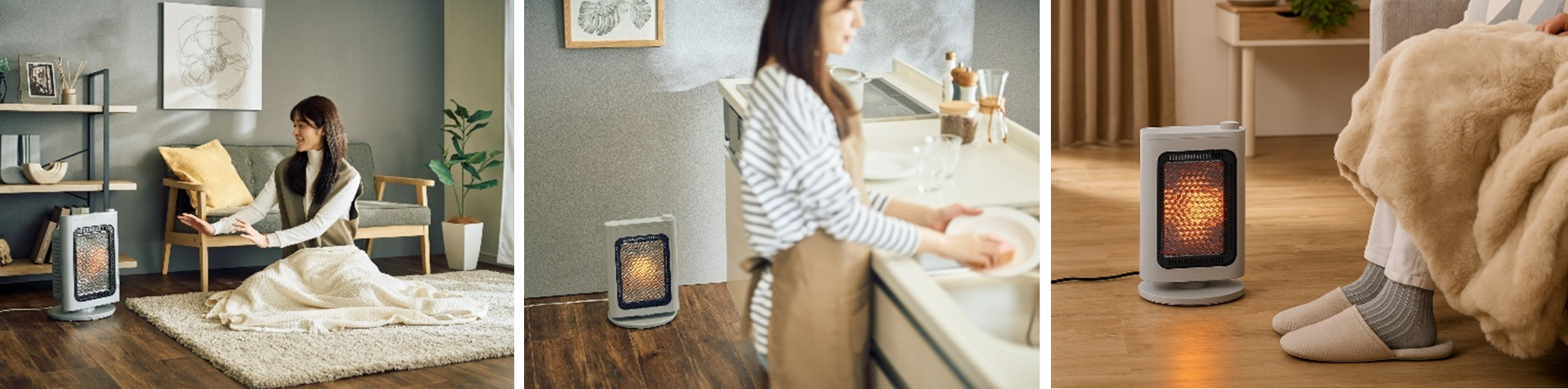 ガード奥に配置されたハニカム状の反射板が、熱を凸レンズのように前方に集中させ放出する電気ストーブです。少ない消費電力でもあたたかさを体感できる設計です。