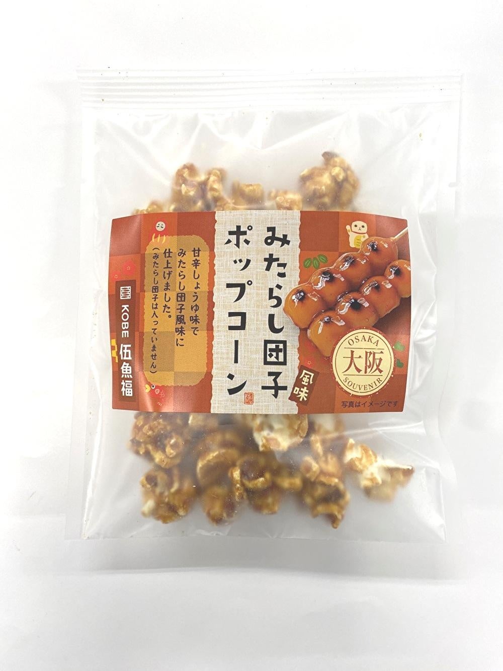 みたらし団子をイメージした丸形のマッシュルーム型のポップコーンに甘辛しょうゆ味のキャンディをコーティングしました。クセになるあまから味がオススメです。