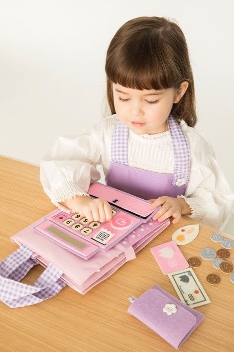 ・フェルト素材で作られているので、「触って感じる」指先の発達や、エプロンを着用することで「全身で楽しみ、想像力を広げる」遊びが出来ます。