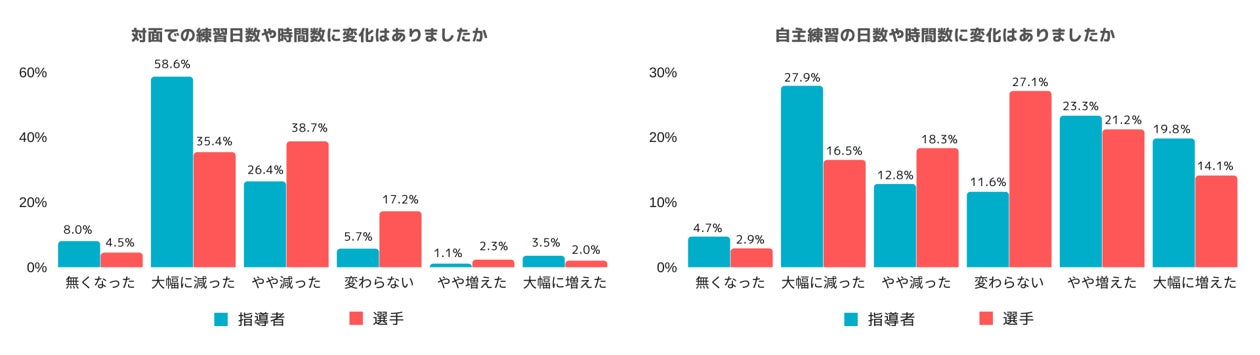 選手からは「無くなった」2.0%、「大幅に減った」14.7%、「やや減った」25.1%で合わせて41.8%となり、「変わらない」と回答した人は48.1%で半数近くとなりました。