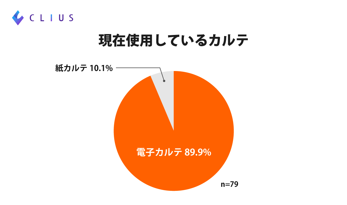 - 回答者のうち、電子カルテを利用している医師は約90%で、診療範囲のIT化意識の高まりを示している。