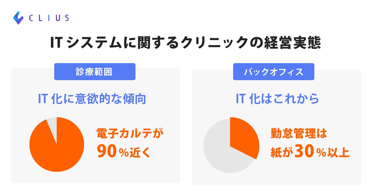 診療範囲とバックオフィスでIT意識に格差 クラウド型電子カルテCLIUS(クリアス)、クリニックのIT化に関する実態を調査