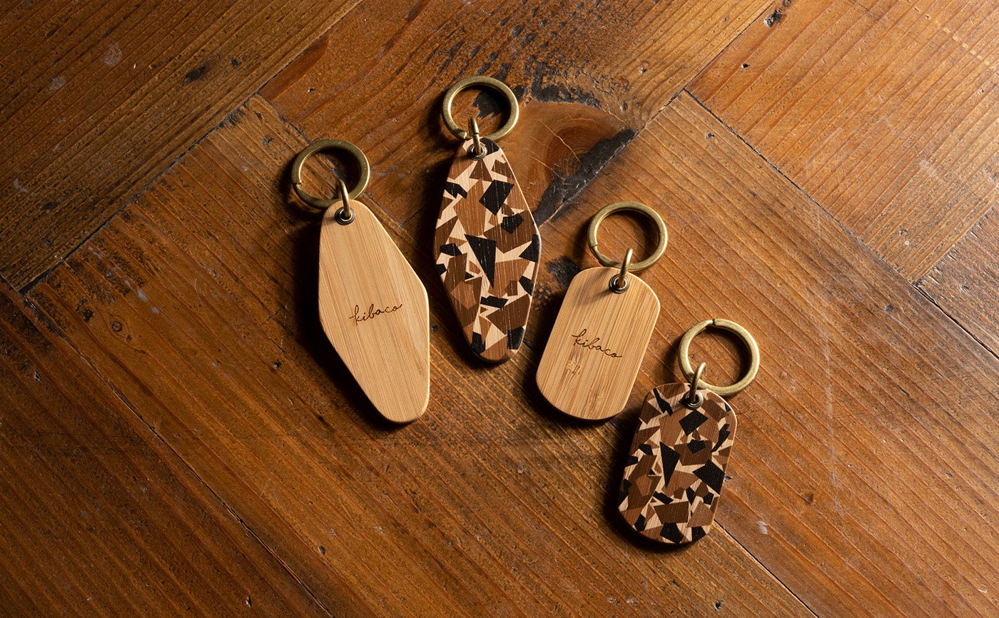 この度、車の鍵などに取り付けるキーホルダーやファッションのアクセントとしても使えるこだわりの新アイテムとして、「KIBACOWORKS(キバコワークス)」とのコラボレーションにより、天然竹を使用したウッドキータグを製作しました。