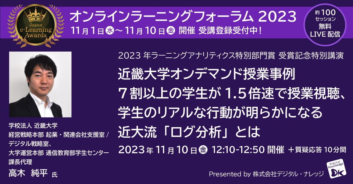 【LMS×授業ログ分析】近畿大学の取り組みが「ラーニングアナリティクス特別部門賞」を受賞!《記念講演11/10 オンラインラーニングフォーラム2023にて開催》