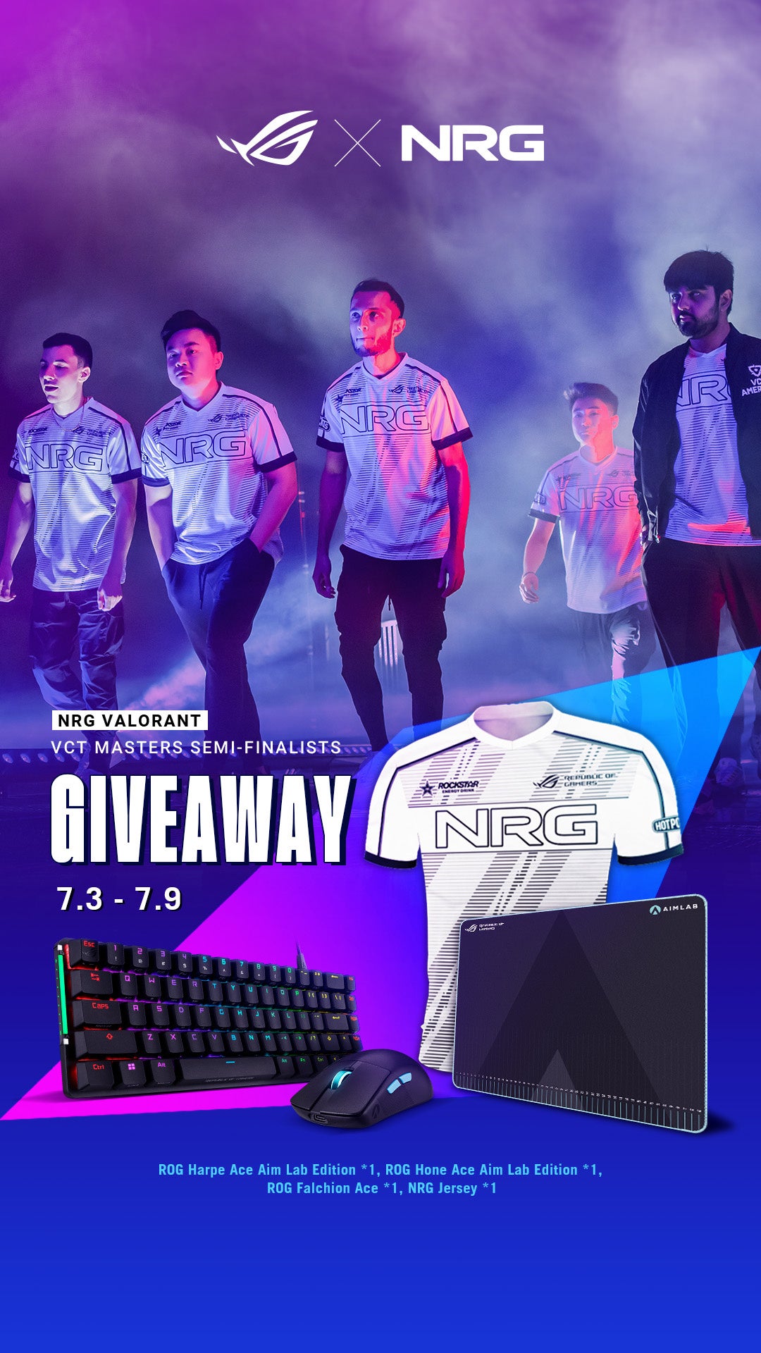 フォロー&RTで、ROG ACEシリーズゲーミングデバイスや、ご自身の名前を入れたNRGユニフォームを計4名様にプレゼントいたします。