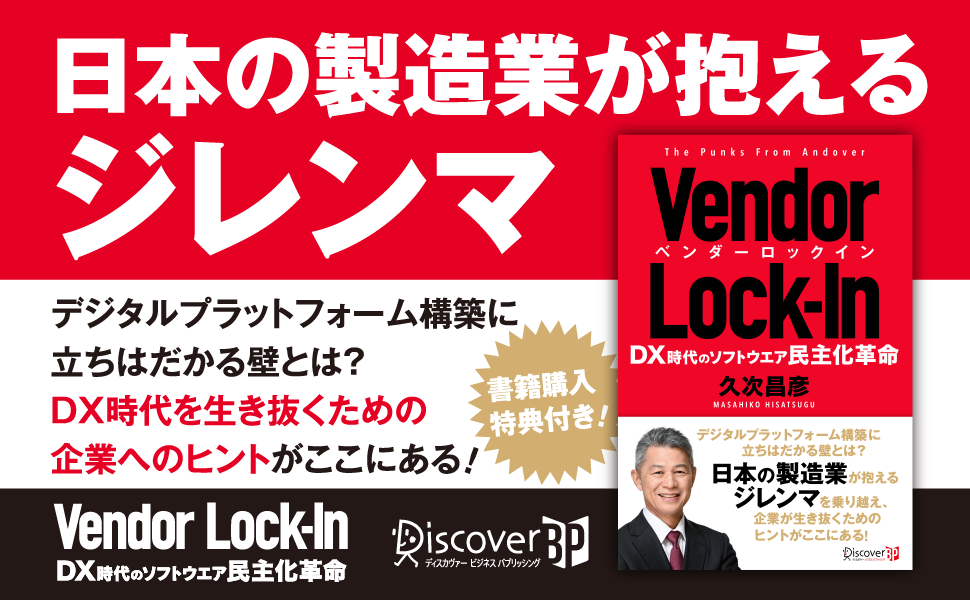 株式会社ディスカヴァー・トゥエンティワン(本社:東京都千代田区、取締役社長:谷口奈緒美)は2023年1月27日に『ベンダーロックイン DX時代のソフトウエア民主化革命~The Punks From Andover~』(久次昌彦・著)を刊行しました。