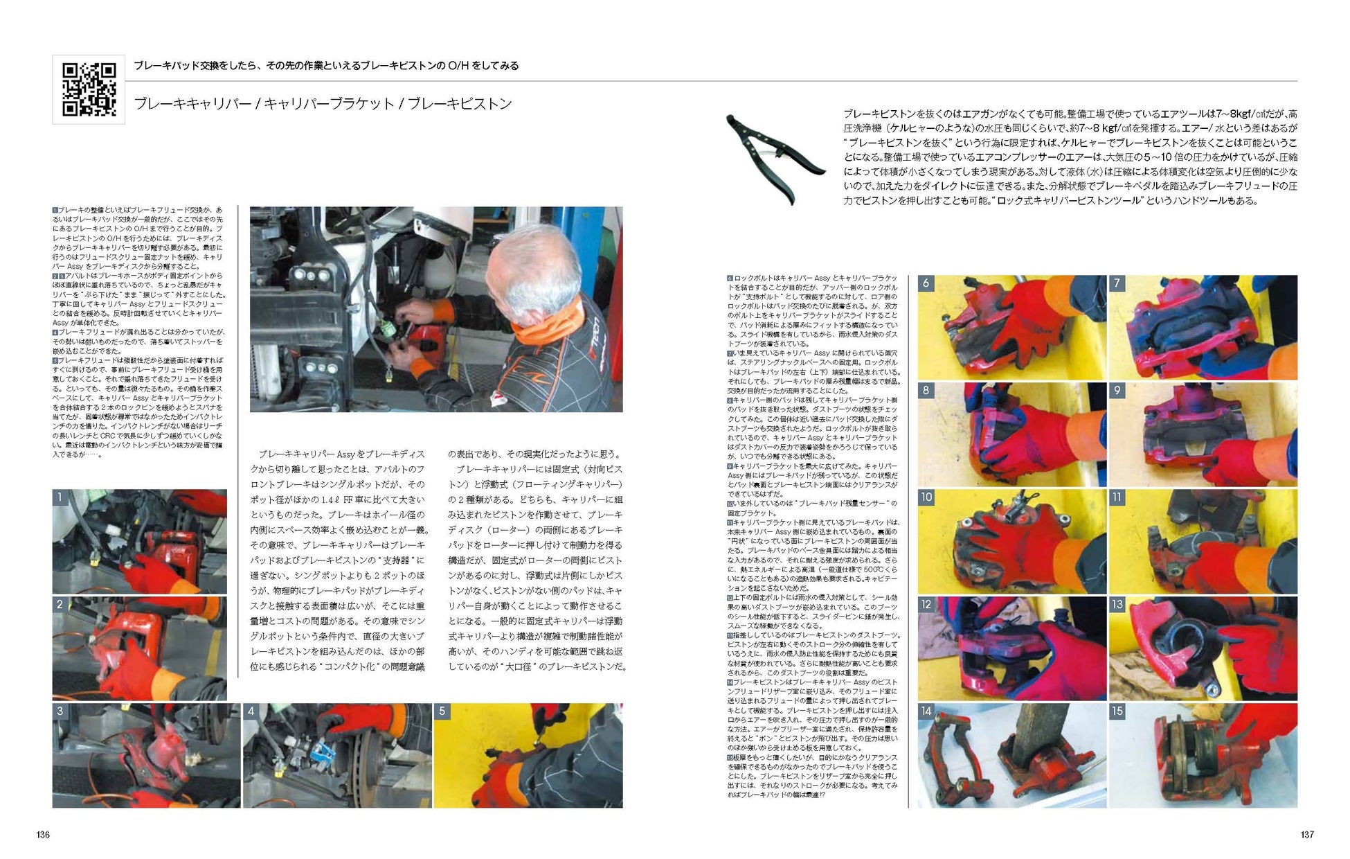 パワーコンポーネンツだけにとどまらず操舵系/制動系のオーバーホール作業も実施。その解説も動画とリンクしたものになっています。動画で作業要領をつかみ、ページ解説でその作業手順と構造を理解することができる構成になっています。