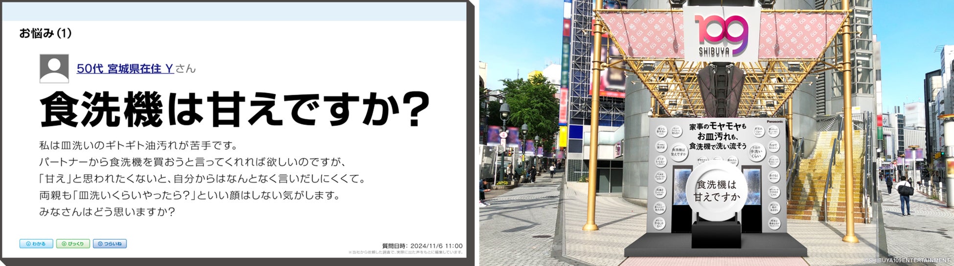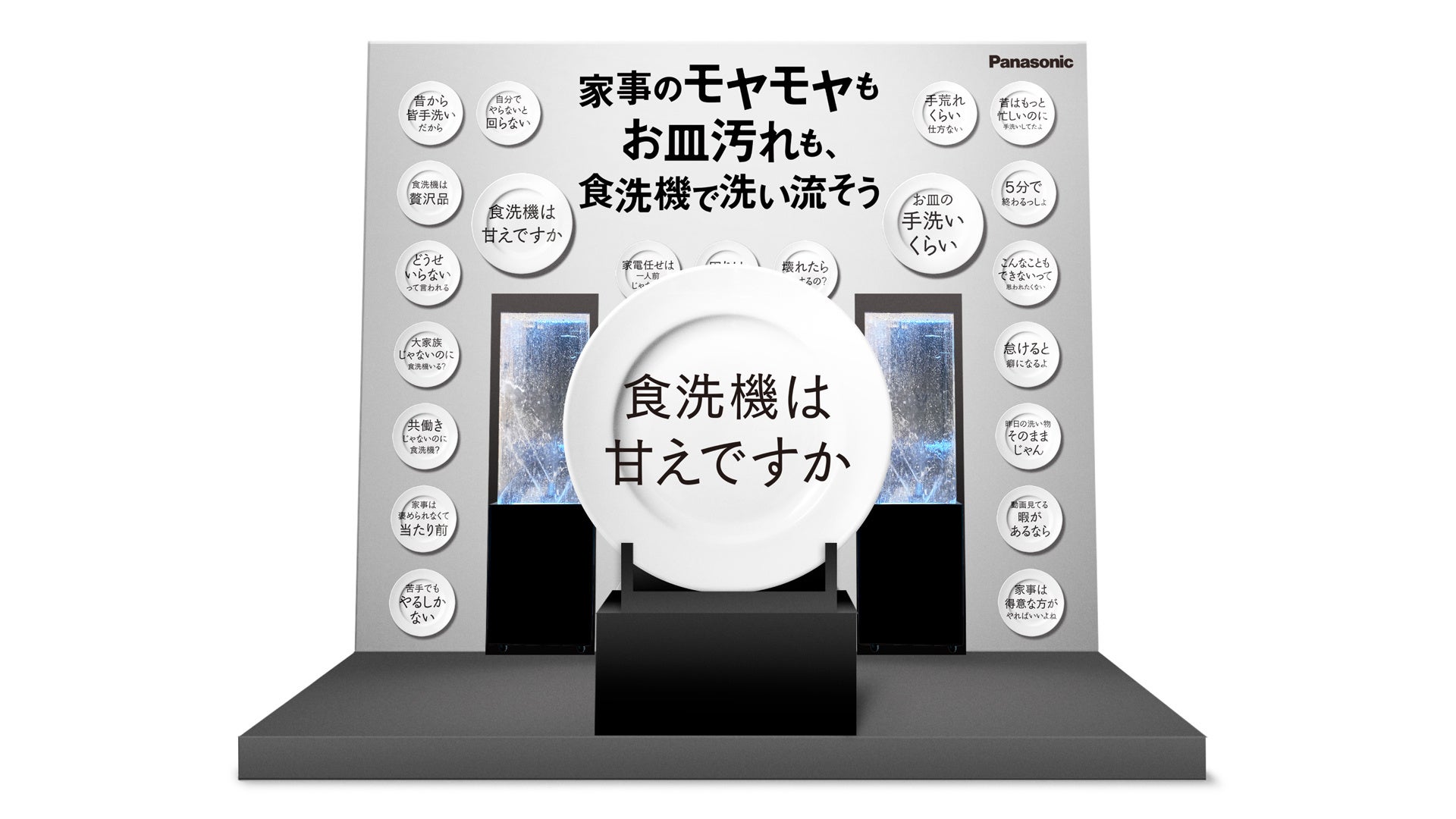 パナソニック株式会社は2月17日(月)より、家事を家電に頼らず自分の手でやるべきと、自らプレッシャーを感じたり、過度に周囲が期待する家事観をもとに、お皿洗いをはじめとする日常の家事や家事分担にまつわるモヤモヤについて考える、「食洗機は甘えですか」プロジェクトを展開します。2月17日(月)から食洗機にまつわるお悩みと回答がセットの駅広告を渋谷駅で展開するほか、2月20日(木)からSHIBUYA109渋谷店 店頭イベントスペースで『家事のモヤモヤもお皿汚れも、食洗機で洗い流そう』イベントを開催します。