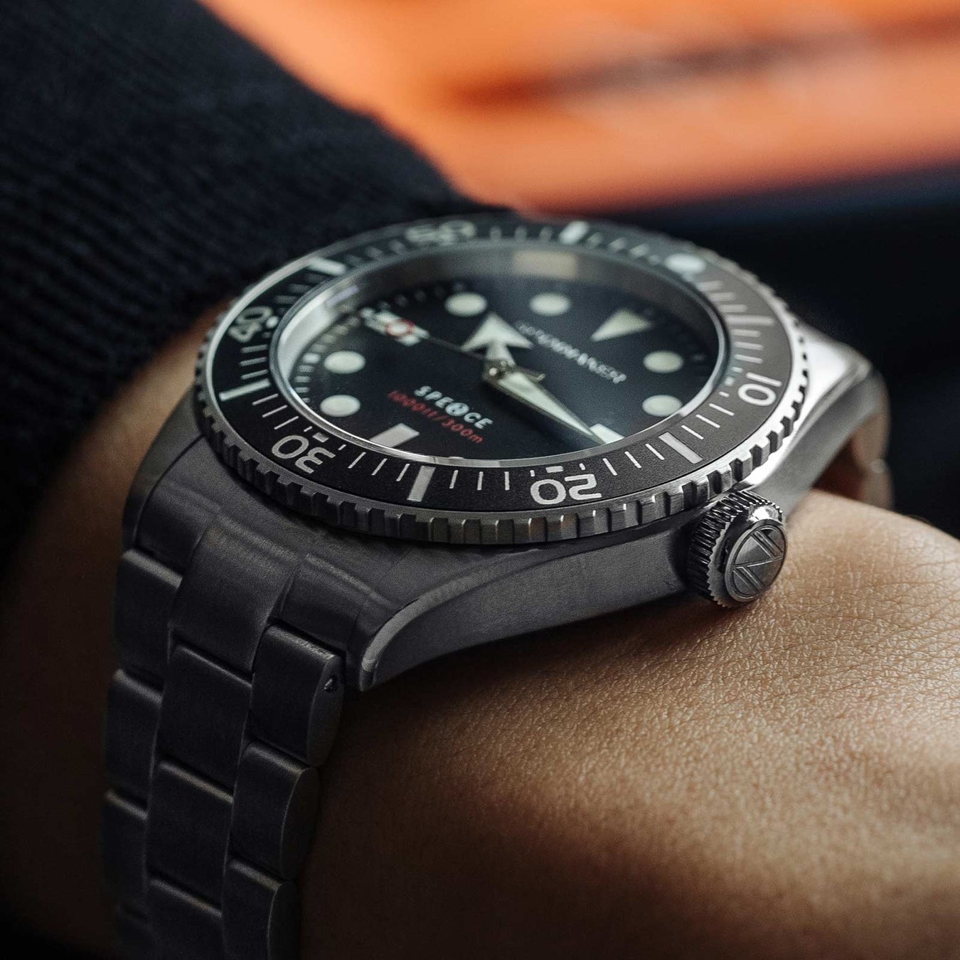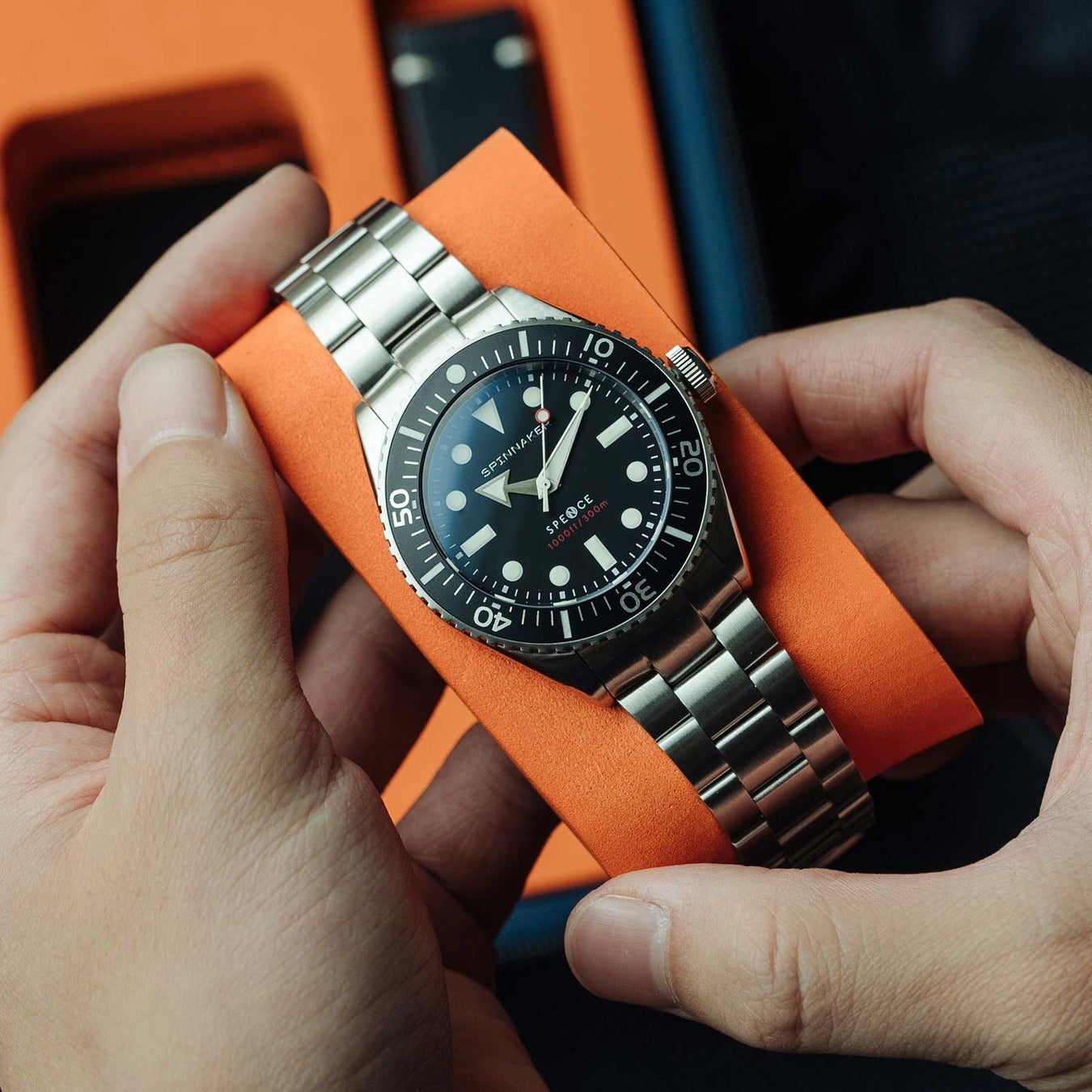 300M防水のダイバーズウォッチは、一般的に「13㎜以上」のケース厚を要すると言われていますが、スピニカーのエンジニアは1年の月日をかけて、薄型ダイバーズウォッチを完成させました。