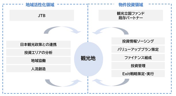 「ALL-JAPAN観光立国ファンド」が持つ観光地バリューアップ投資機能、観光関連企業への支援機能と、JTBが地域で培ってきた知見・ノウハウ、経験、ネットワークを組み合わせ、観光地に新たな価値を創出し、その持続的な発展に寄与します。