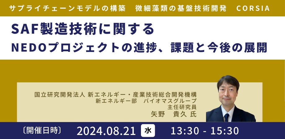 【JPIセミナー】「SAF製造技術に関するNEDOプロジェクトの進捗、課題と今後の展開」8月21日(水)開催