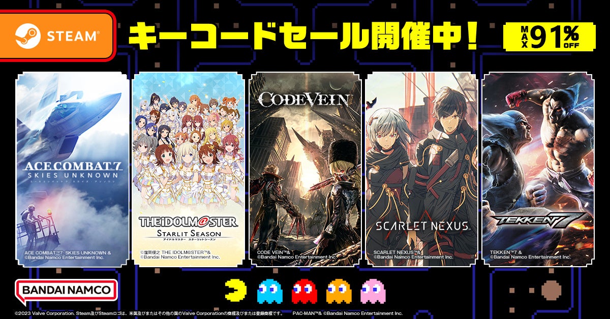 バンダイナムコエンターテインメントSTEAMキーコードセール開催中!STEAM®キーコードが期間限定で最大91%OFF!