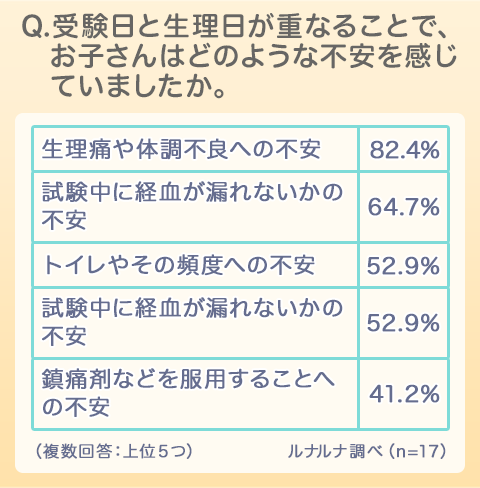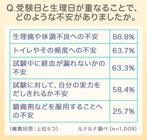 Q. 受験日と生理日が重なることで、どのような不安がありましたか。(複数回答)