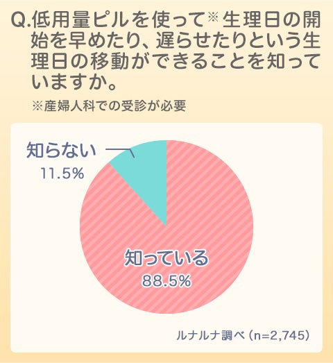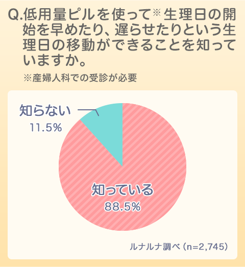 Q. 低用量ピルを使って(※)生理日の開始を早めたり、遅らせたりという生理日の移動ができることを知っていますか。(※産婦人科での受診が必要)