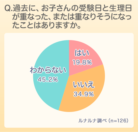 生理が規則的に来ている場合、1カ月のうちの約1/4が生理中にあたるため、受験シーズンと重なることはよくあることかもしれません。ただ、人生の重要な分岐点になるかもしれない受験の日に生理がやってくることは、やはり多くの女性にとって心配事のようです。