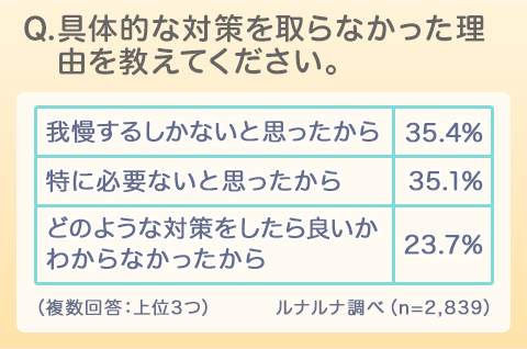 一方で、そもそも受験日と生理日をずらすための対処法である「ピルを処方してもらい、生理日を調整した」の回答は4.1%にとどまりました。