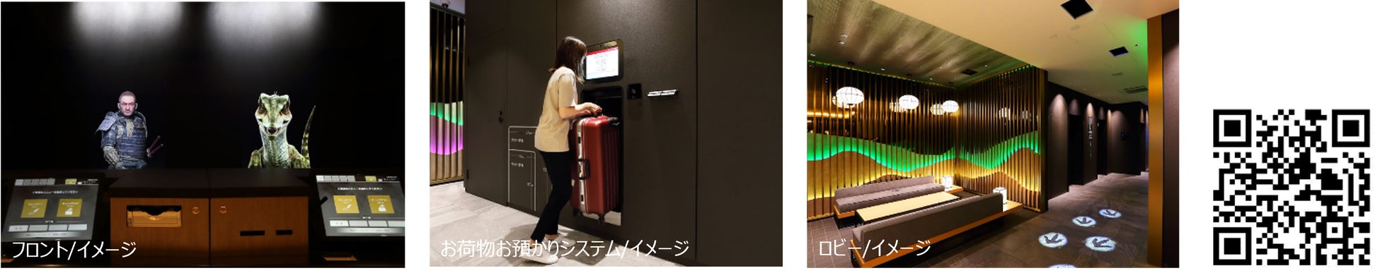 フロントでは恐竜ロボットがお客様をお出迎えし、チェックインをお手伝いしております。伏見稲荷をイメージしてデザインしたロビーではフロアマッピングを展開しております。JR京都駅から徒歩約2分と至近で、観光・ビジネスどちらにも最適な立地です。