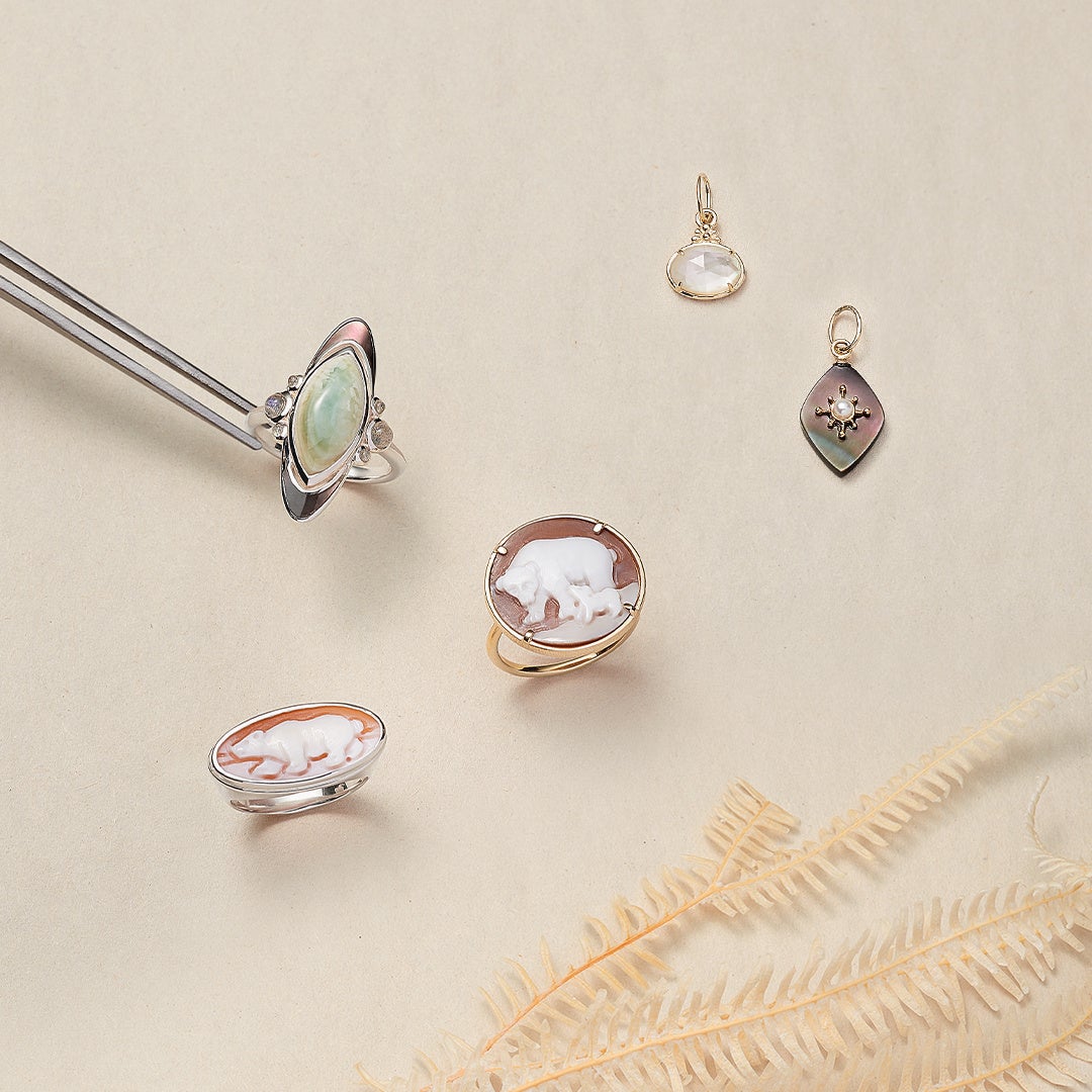 黒蝶貝の美しさを存分に楽しめるチャームとリング。