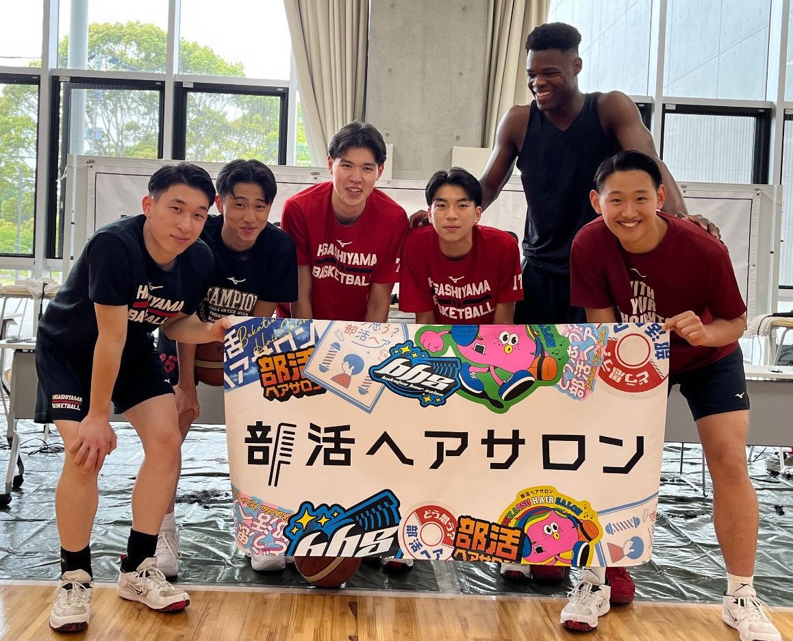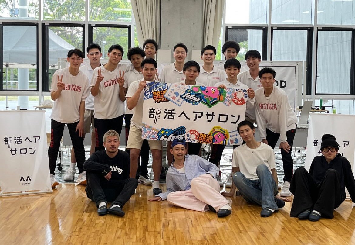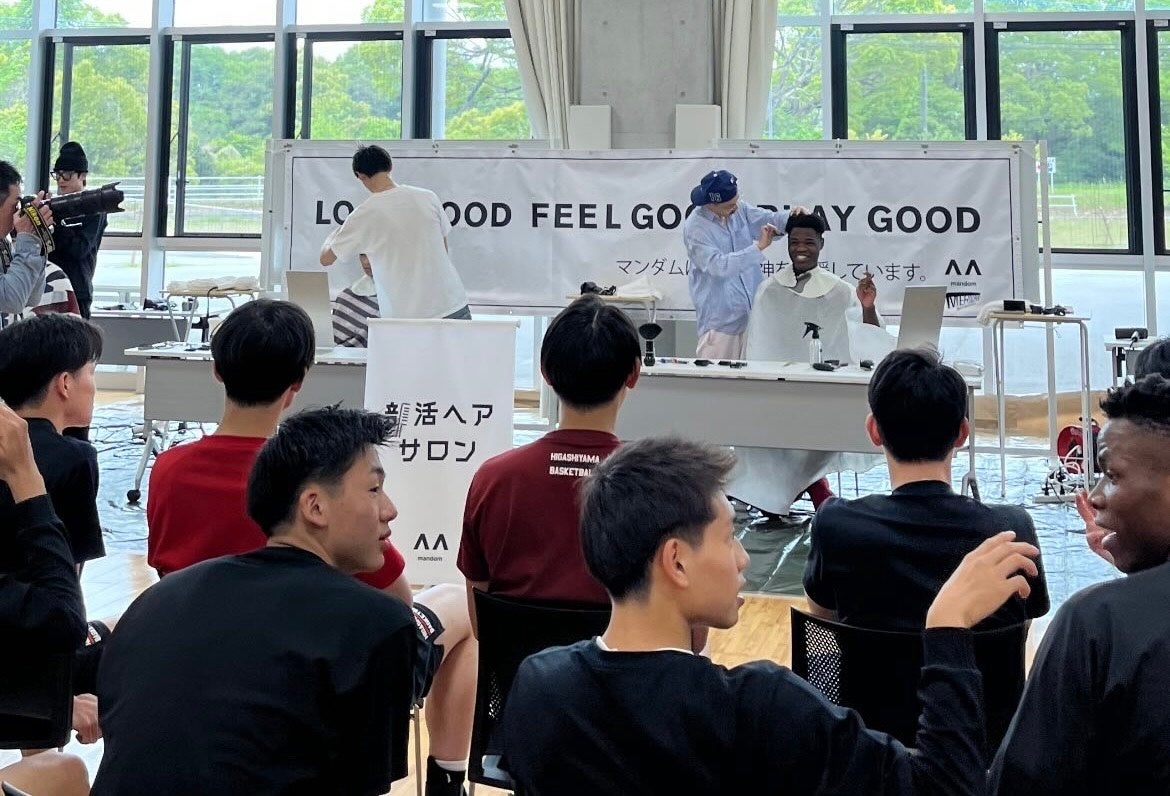 株式会社マンダムはメリケンバーバーショップの協力のもと、2025年4月25日、福岡県飯塚市で開催される「MANDOM presents 飯塚カップ2025バスケットボール大会」の前日に、飯塚カップ出場のために県外からやってきた東山高等学校(京都)および開志国際高等学校(新潟)の男子バスケットボール部選手たちを対象に「部活ヘアサロン」を実施しました。