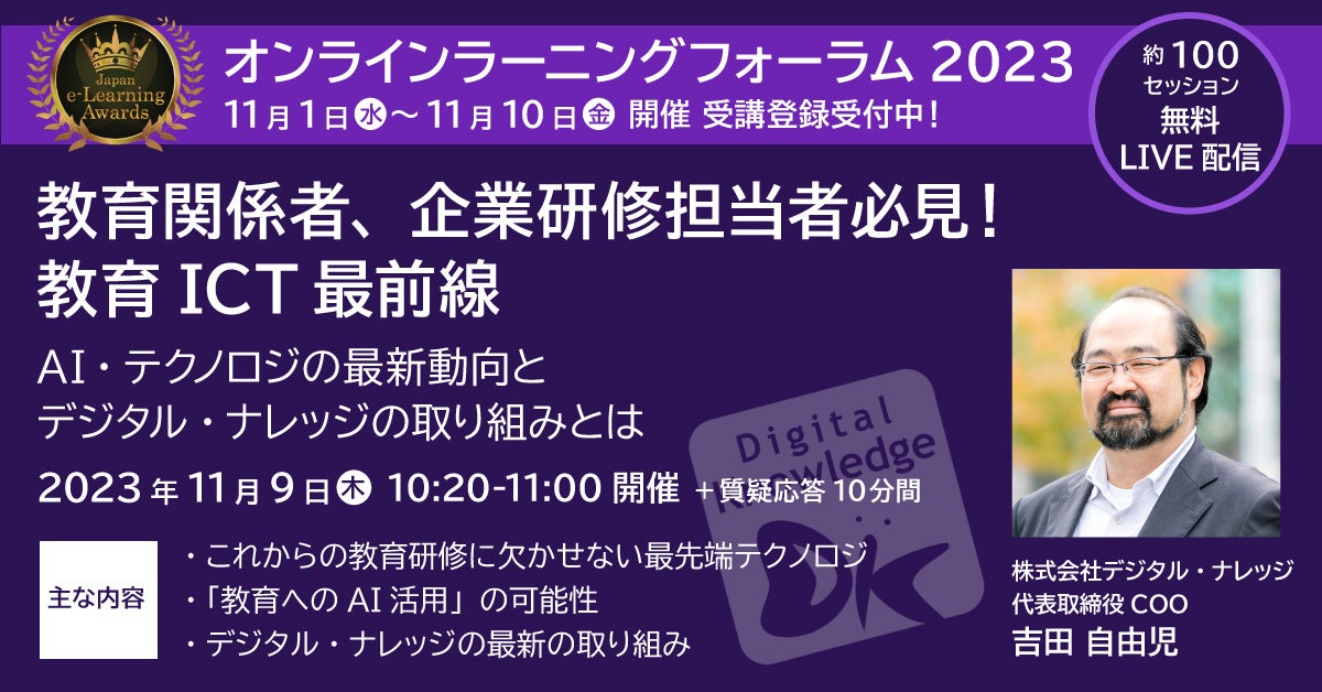 上記の講演は『オンラインラーニングフォーラム2023』内で開催される特別講演です。