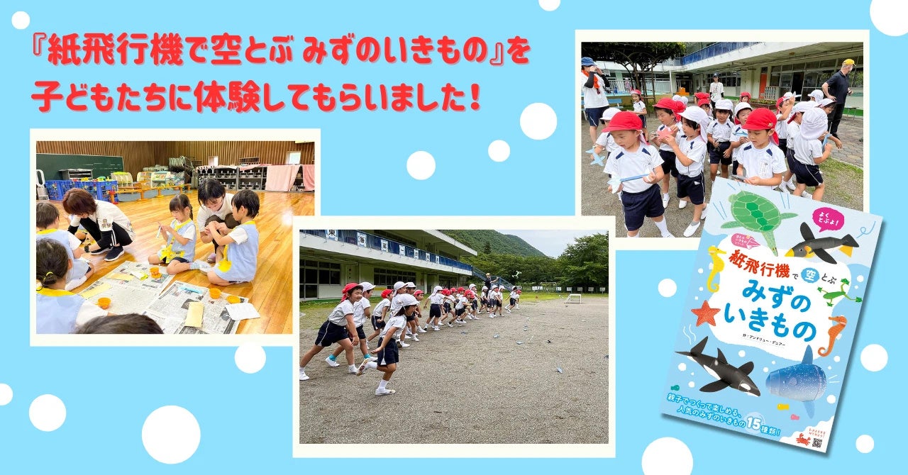 著者のアンドリュー・デュアーさんのお勤め先の東海第一幼稚園の園児のみなさんにご協力いただいて、『紙飛行機で空とぶ みずのいきもの』で遊んでもらいました!