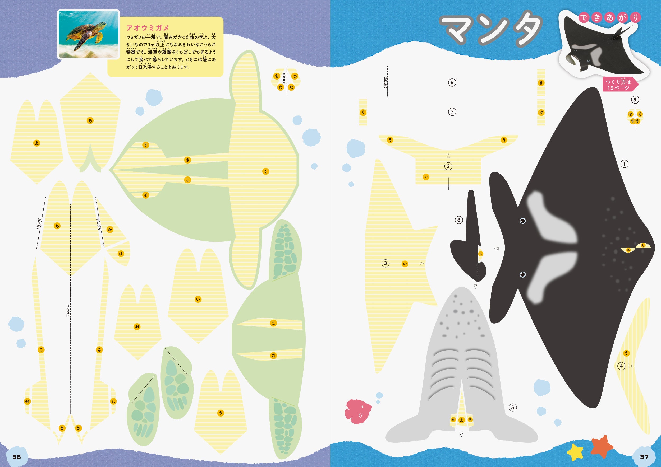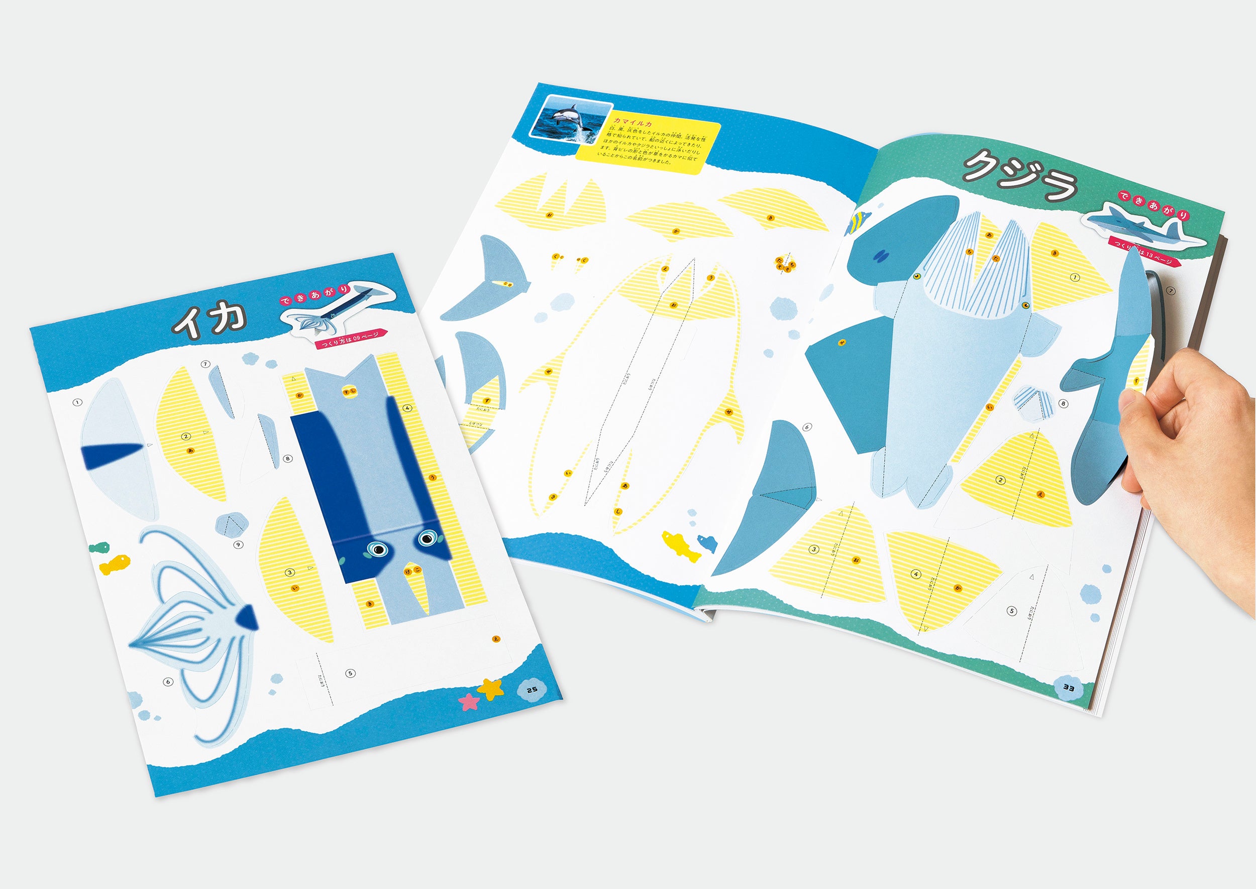 イルカ・サメ・カエル・ペンギンなど、水族館で人気のいきものたちが紙飛行機になって空を飛ぶ! いきものの生態や空飛ぶ仕組みを学びながら、楽しく工作ができるペーパークラフトブックです。作り方や飛ばし方はイラストつきでわかりやすく解説。部品はミシン目つきで簡単に切りはがせます。