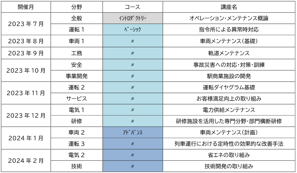 ・■アドバンスコース(鉄道業界の経験3年以上向け)、■ベーシックコース(鉄道業界の経験3年未満向け)、