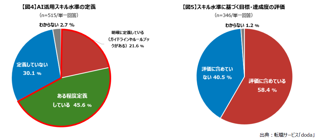 AI活用スキルの水準を定義する企業は約7割、うち評価にも含めている企業は約6割