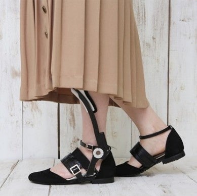 心の後押しをする靴を提案。片手で楽に履けて、自分好みの色や素材が選べる靴は、セミオーダー式で左右サイズの違いのある方にも対応しています。